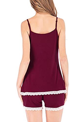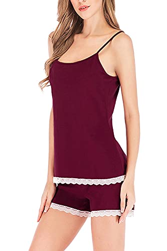 Generic - ملابس نوم بيجامة شورت - قطن - لون احمر نبيذى- نساء