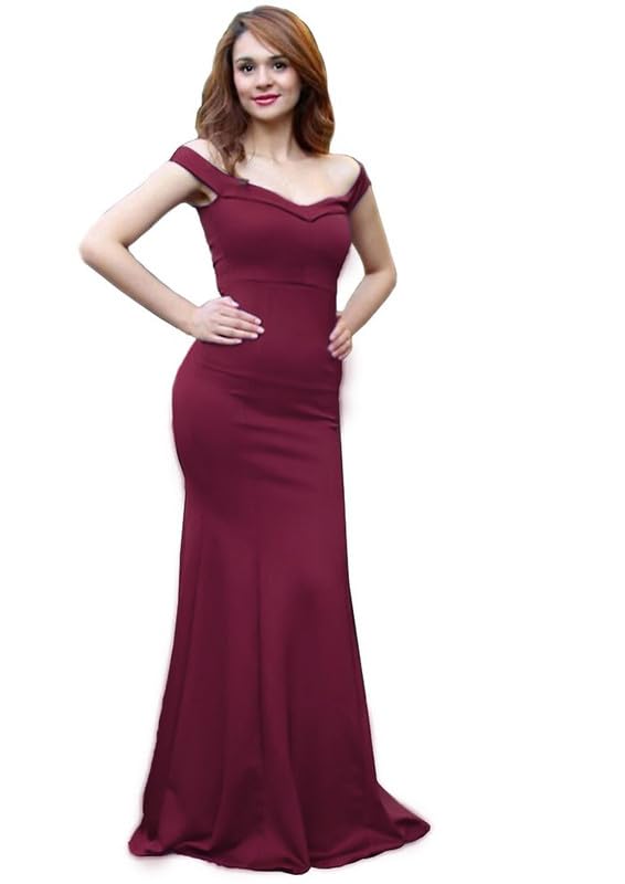 Generic - فستان طويل دون اكمام من خامة الاسكوبا مناسب للسهرات