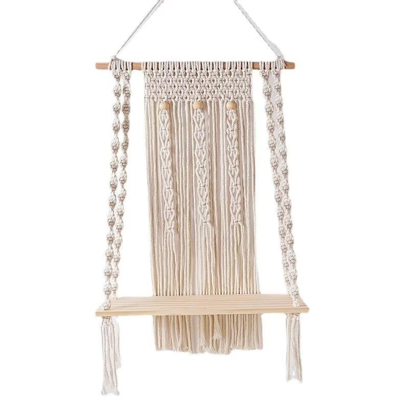 - ❤️️متانة قوية: رف مكرمية للتعليق على الحائط منسوج يدويًا بحبل قطني طبيعي وصحي ومتين. منتجات قوية التحمل ومتينة