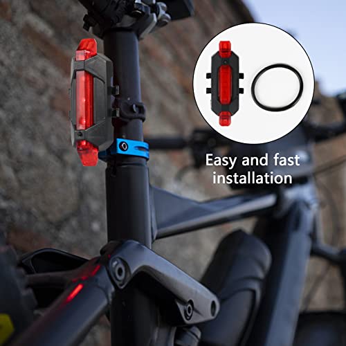 - 3 أوضاع إضاءة: تحتوي المصابيح الخلفية للدراجة على 5 كرات ليد والتي تحتوي على 3 أوضاع إضاءة: ضوء طويل، وميض سريع ودورة سريعة. يعمل الضوء الأحمر كتحذير في الليل للحفاظ على سلامتك.