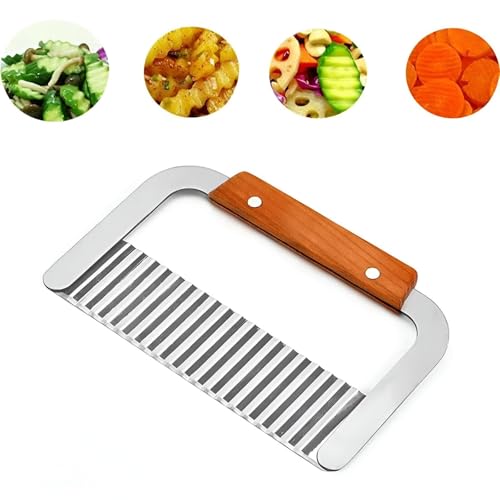 Generic - قطاعة متعددة الأغراض للخضروات والمخللات بشفرة متينة من الفولاذ المقاوم للصدأ ومقبض خشبي لسهولة تقطيع البطاطس والجزر