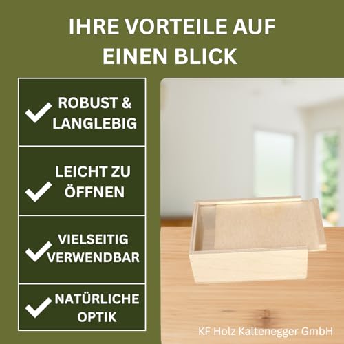 KF-Holz - صندوق بغطاء منزلق من خشب البتولا الرقائقي، صندوق هدايا وتخزين خشب، صندوق خشب مزود بغطاء، صندوق أدوات، صندوق زجاجات مشروبات، مقاس (12 × 8 × 4 سم)