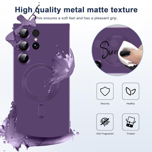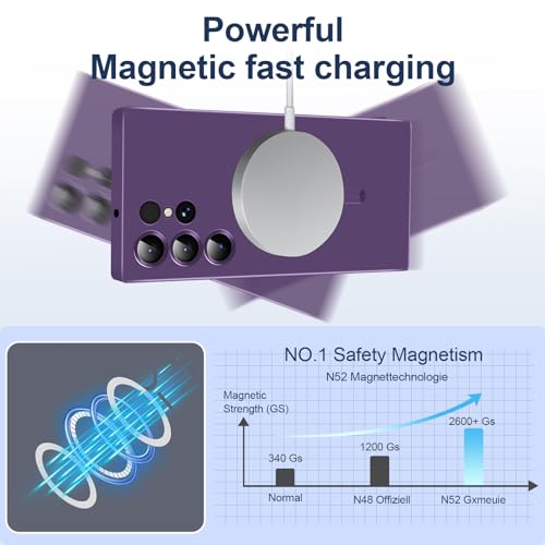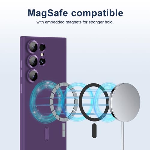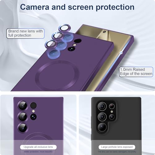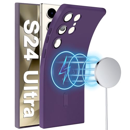 Gxmeuie - جراب رفيع لموبايل سامسونج جالاكسي S24 الترا 5G، [واقي عدسة الكاميرا] [ماج سيف] جراب موبايل من السيليكون الناعم والمطاط الناعم S24 الترا، غطاء شحن لاسلكي مغناطيسي لسامسونج S24 الترا (ارجواني)