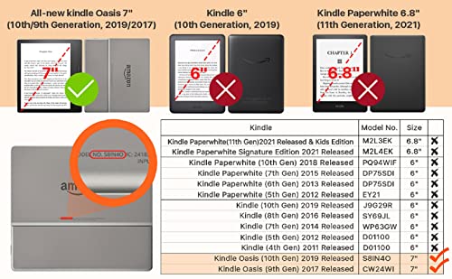 - 【الموديل المتوافق】: متوافق فقط مع Kindle Oasis 7 بوصة (الجيل العاشر، إصدار 2019 والجيل التاسع، إصدار 2017).
