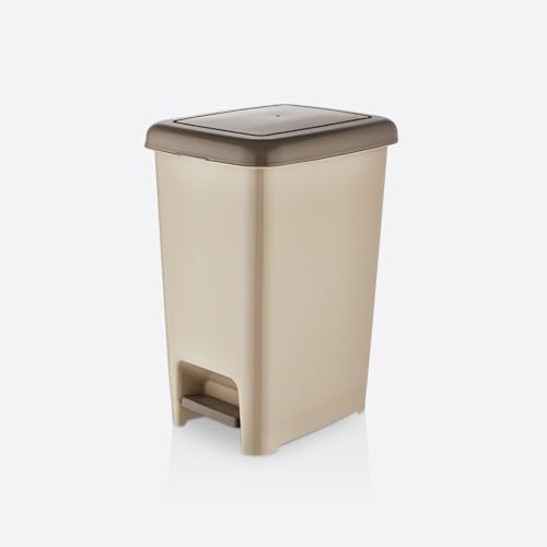 Generic - سلة مهملات مستطيلة نحيفة من البلاستيك مع دواسة تأتي دلو داخلي للمكتب والمنزل والحمام والمطعم والمطبخ وغرفة النوم بيج 15 لترًا