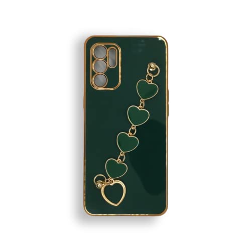 Generic - جراب رفيع وناعم من البولي يوريثين الحراري مع سوار سلسلة قلوب واطار ذهبي لموبايل اوبو رينو 6 4G (اخضر)