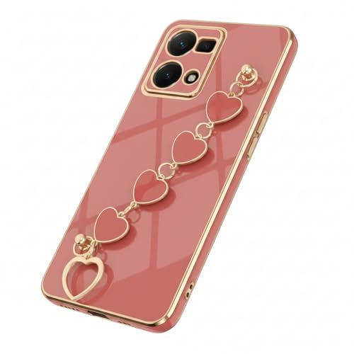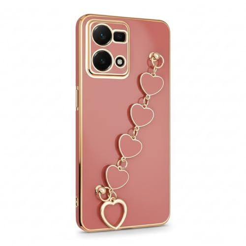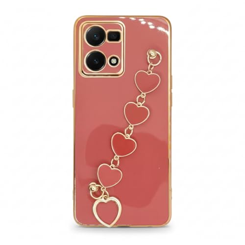 Generic - جراب رفيع وناعم من البولي يوريثين الحراري مع سوار سلسلة قلوب واطار ذهبي لموبايل اوبو رينو 7 4G (متعدد الالوان)