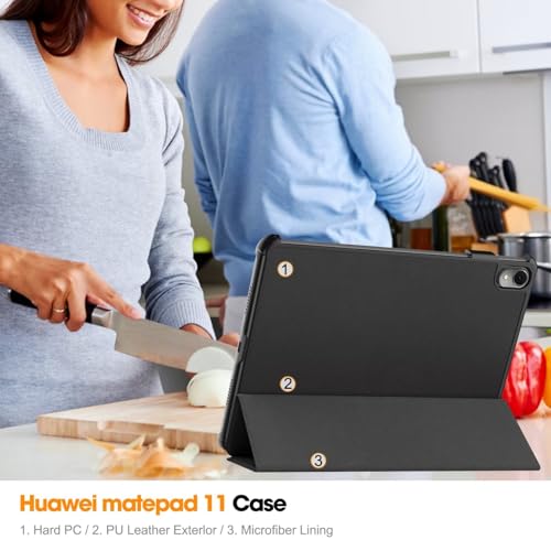 URBBKING - جراب حماية خلفي صلب بتصميم رفيع لتابلت هواوي ميت باد SE بشاشة 11 بوصة، مع خاصية الفتح /الإغلاق التلقائي، أسود