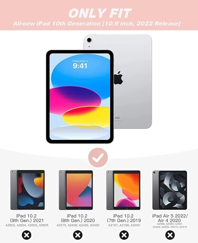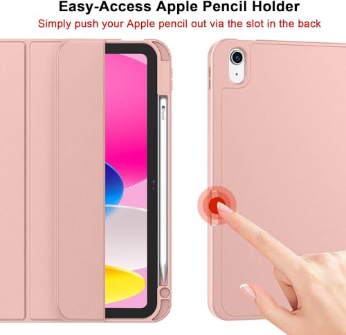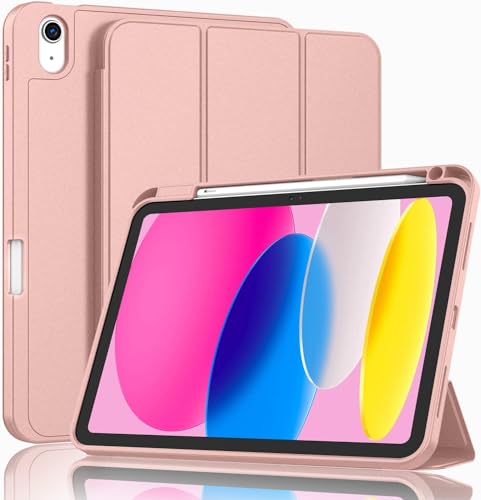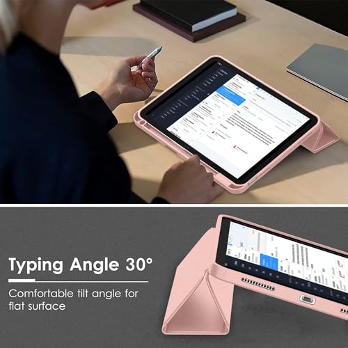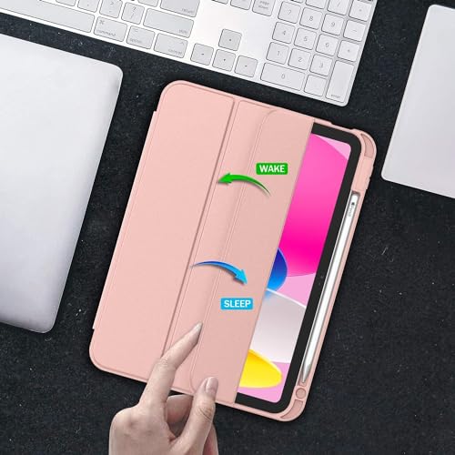Generic - جراب تابلت رفيع مع حامل قلم، حامل ثلاثي الطيات ووظيفة النوم/الاستيقاظ التلقائي لجهاز آي باد الجيل العاشر 2022 (لون روز جولد)