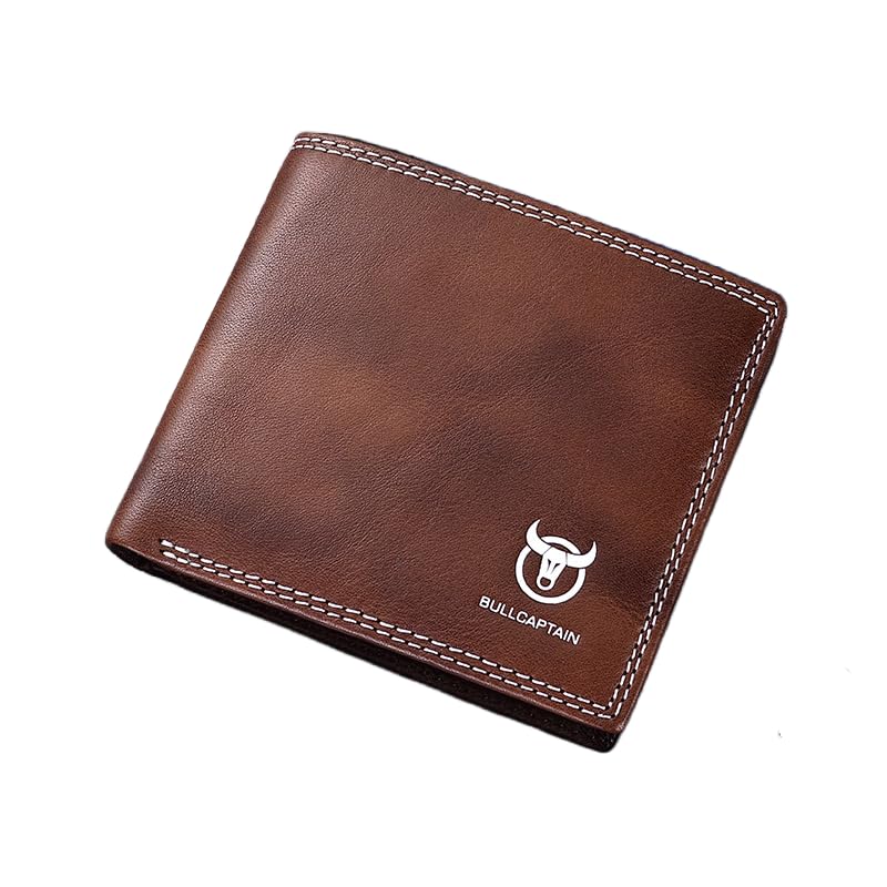 Generic - محفظة من رنبوكس مصنوعة من الجلد الفيجان للرجال، بتصميم بسيط باللون البني، مع خاصية حماية RFID ونافذة للهوية