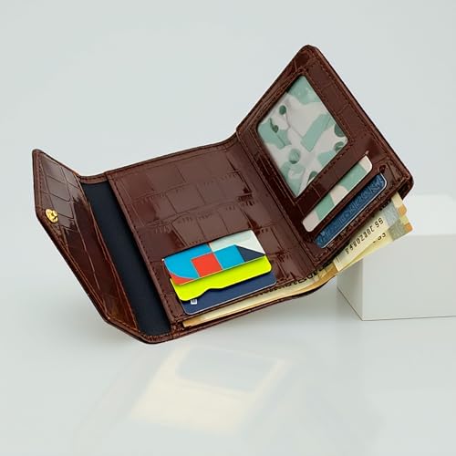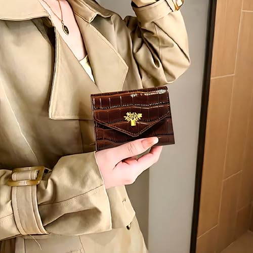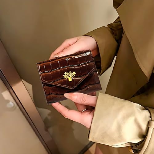 Generic - محفظة رفيعة بتصميم جلد التمساح المعدني وحامل بطاقات الائتمان للنساء والفتيات وبطاقة الهوية الصراف الآلي تنضح بالأناقة العصرية (بني كافيه1)