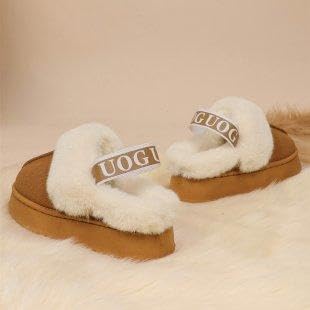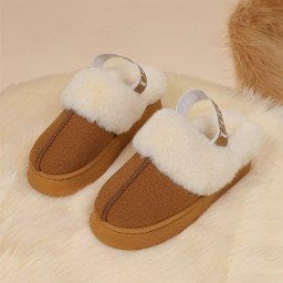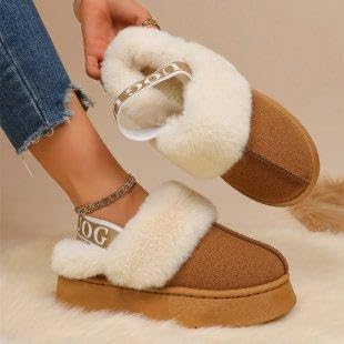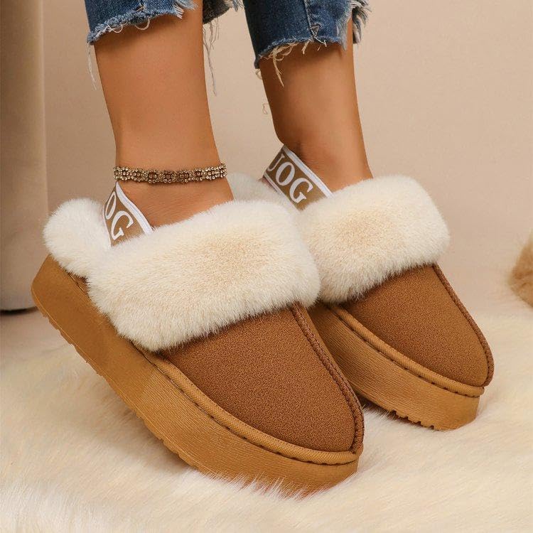 Generic - حذاء بحزام خلفي - حذاء عصري للنساء يتميز بفرو صناعي بلون بيج داكن ونعل عريض عريض لمظهر كاجوال انيق (بني، 41)