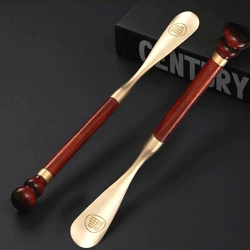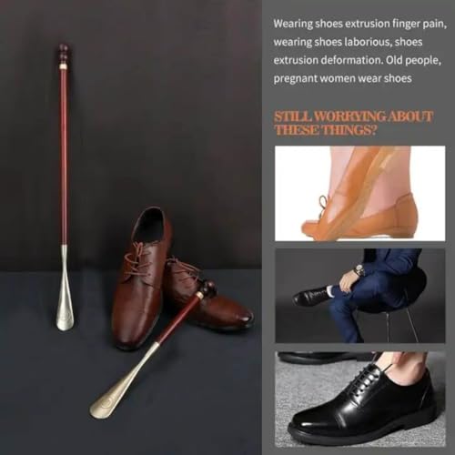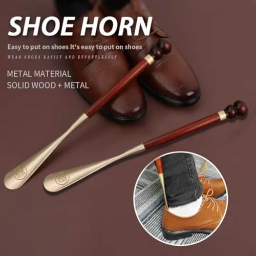 Slip N Go - بوق احذية طويل فاخر من سليب ان جو 57 سم - خشب طبيعي ونحاس مصقول - مساعد احذية لا ينحني مع مقبض مريح - اكسسوار انيق ومتين للرجال والنساء وكبار السن