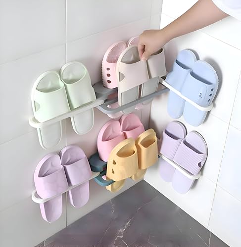 Generic - حامل شبشب - رف حائط للحمام قابل للطي 3 في 1، تصميم لاصق لا يحتاج إلى ثقب، منظم متعدد الالوان للاحذية والمناشف والاكسسوارات اليومية، حامل موفر للمساحة (قطعة 1)