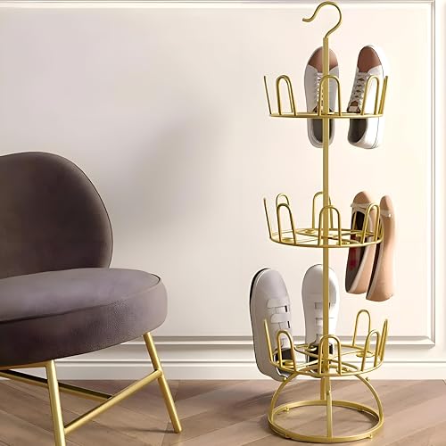 Generic - رف شبشب - رف احذية دوار مقاوم للماء مع اطار حديدي ثابت، طلاء مضاد للصدأ، تصميم اصفر صغير (24 × 37 سم) لمداخل خالية من الفوضى.