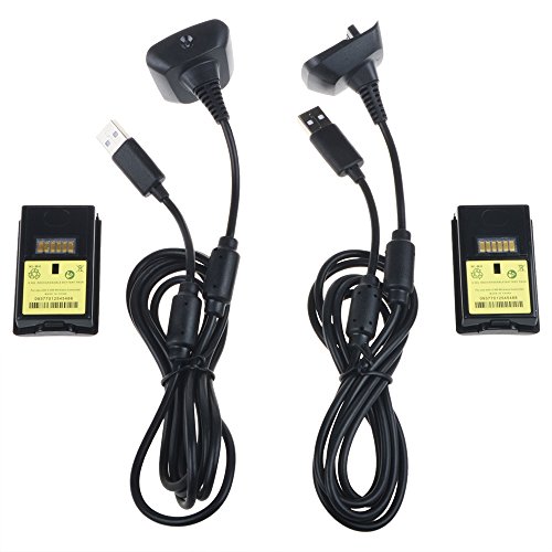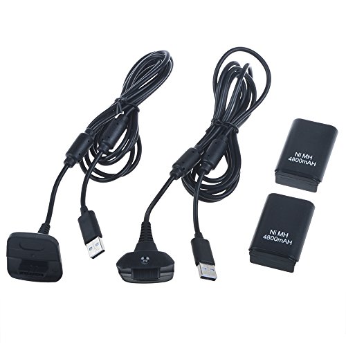SLLEA - وحدة بطارية 4800 ميللي أمبير مع كابل شحن لوحدة التحكم اللاسلكية لجهاز اكس بوكس 360 من سليا، 2 قطعة، أسود