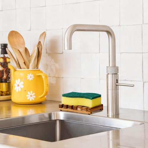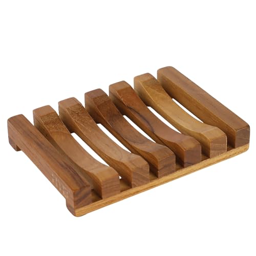 HTB - حامل صابون مشقوق من خشب الساج من اتش تي بي، حامل اسفنجة خشبي للمطبخ، طبق صابون ذاتي التصريف للاستحمام والحوض والحمام وحوض الاستحمام والمركبات الترفيهية