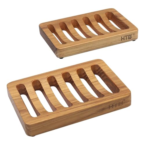 HTB - صبانة بتصميم مشقوق من خشب الساج، حامل إسفنجة من الخشب للمطبخ، صبانة ذاتية التصريف للاستحمام والحوض والحمام وحوض الاستحمام والمركبات الترفيهية من 2 قطعة من اتش تي بي