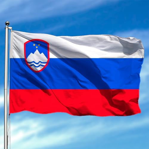 JYC CREATIVE - علم سلوفينيا، علم 90 سم × 150 سم، علم كبير مع حلقة عمود واربطة للتثبيت، علم خفيف الوزن، علم للرياضة وكرة القدم والمباني (سلوفينيا قطعة واحدة)