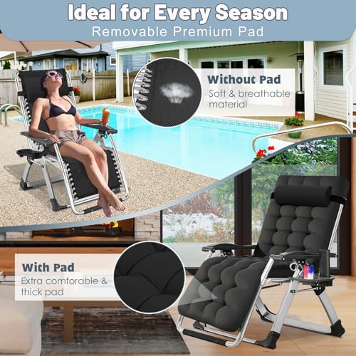Slsy - كرسي استرخاء مريح بتصميم يشعرك بانعدام الجاذبية وقابل للطي وبوسادة وحامل أكواب قابلين للإزالة للاستخدام الداخلي والخارجي للبالغين والأطفال من سلاسي، أسود
