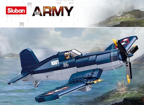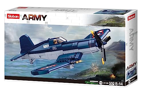 Sluban - لعبة مكعبات ارمي بلوكس من سلوبن، 550 قطعة للأطفال بعمر 8 سنوات فما فوق، ألعاب للبنات، هدية عيد ميلاد، هدية الكريسماس، للتعليم الممتع للأطفال، موديل Wwii-F4U