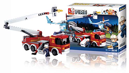 Sluban - قطع تركيب شاحنة مع طائرة هيليكوبتر لاطفاء الحرائق من سلوبان M38-B0627 - متعدد الالوان، ايه بي اس