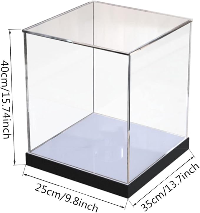 - تصميم فاخر: صندوق عرض أكريليك شفاف مع قاعدة سوداء أنيقة، مثالي لعرض المقتنيات والأشياء الثمينة