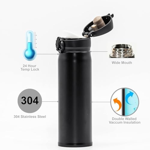 Generic - قارورة من الفولاذ المقاوم للصدأ معزولة بجدار مزدوج، سعة 355 مل، للمشروبات الساخنة والباردة، كوب قهوة للسفر، مضاد للتسرب من اس ام 4 يو، أسود