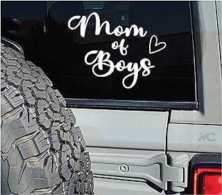 Generic - ستيكر لاصق من الفينيل بطبعة عبارة "Mom of Boys" لنافذة السيارة بتصميم قلب أسود من اس ام 4 يو