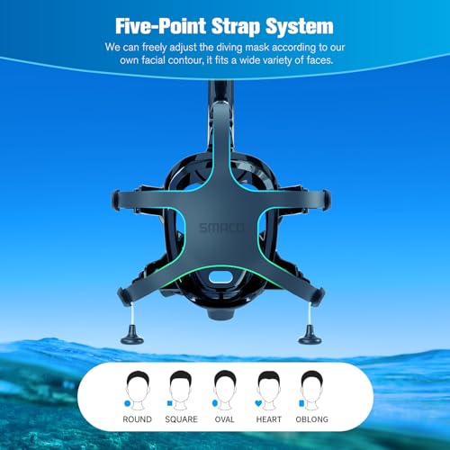 SMACO - سماكو قناع غوص لكامل الوجه للبالغين مع حامل كاميرا، قناع غوص سكوبا مضاد للضباب ومضاد للتسرب، مجموعة قناع الغوص متوافق مع خزان الغوص S400/S400 برو/S700/S700 ماكس للرجال والنساء