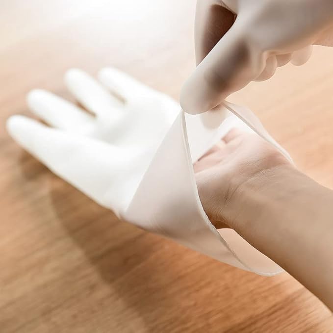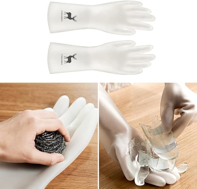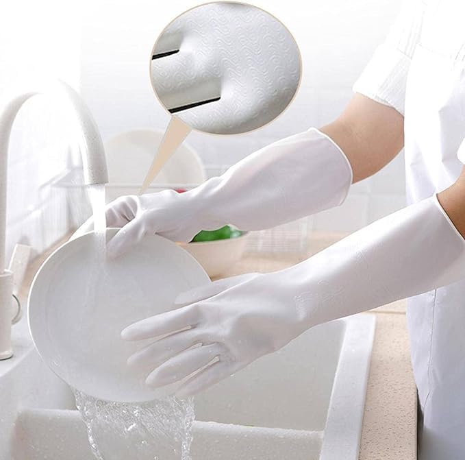 Generic - زوجان قفازات صغير لغسيل الصحون والتنظيف من اللاتكس المطاطي المقاوم للماء (لون أبيض) (4 قطع)