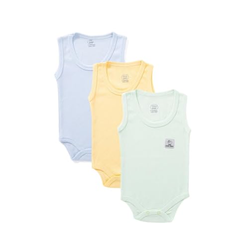 SmallBaby - سالوبيت بكباسين قطن بدون أكمام للأطفال حديثي الولادة من الجنسين، عبوة من 3 قطع، لون سادة