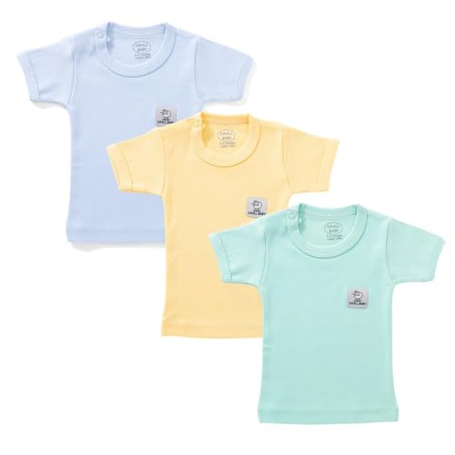 SmallBaby - فانلة قطن للأطفال الصغار بأكمام طويلة وقصة عادية للرضع من الجنسين، لون سادة، عبوة من 3 قطع