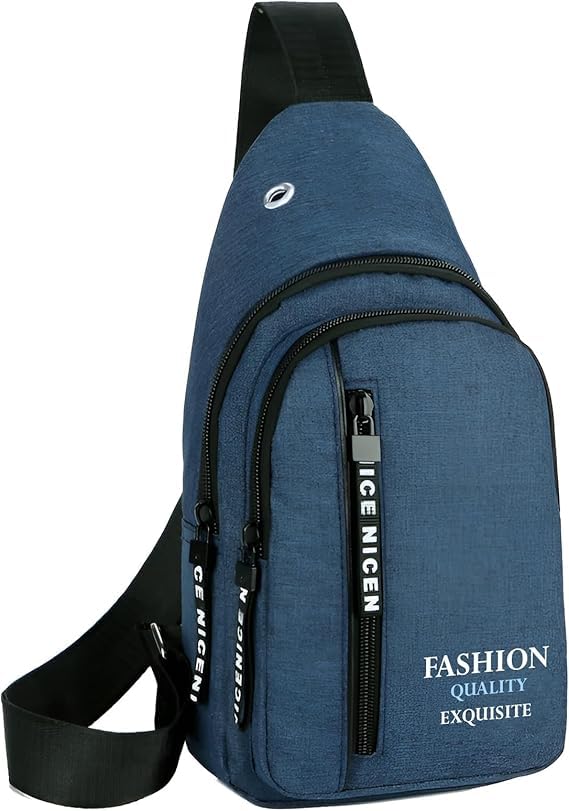 Generic - شنطة ظهر صغيرة متعددة الاستخدامات على الصدر والكتف شنطة سفر من القماش السميك متعددة الجيوب شنطة سفر مقاومة للماء للرجال والنساء والأولاد مع فتحة لسماعة الأذن