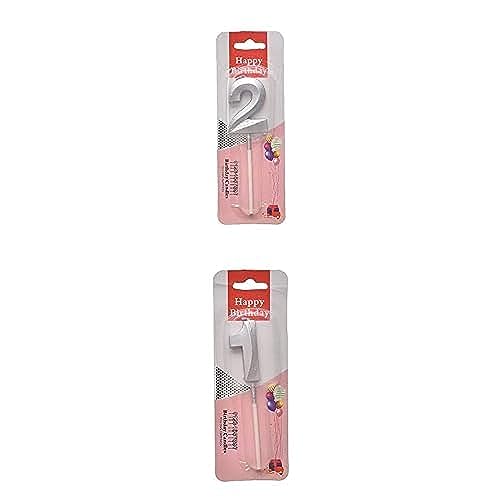 Generic - شمعة صغيرة لعيد الميلاد بتصميم رقم 2 مزينة بالجليتر لتزيين الكيك، فضي + شمعة صغيرة لعيد الميلاد بتصميم رقم 1 مزينة بالجليتر لتزيين الكيك - فضي