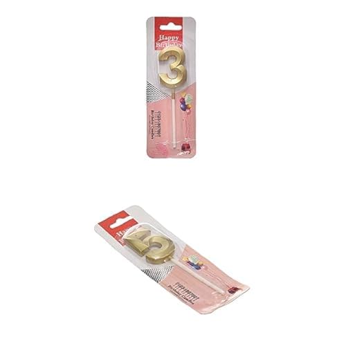 Generic - شمعة صغيرة بشكل رقم 3 مزينة بجليتر ذهبي لامع + شمعة صغيرة بتصميم الرقم 5 بجليتر ذهبي لامع، لعيد الميلاد وتزيين الكيك