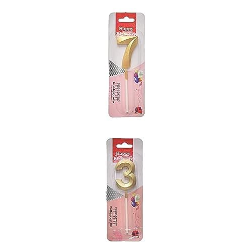 Generic - مجموعة شموع صغيرة مزينة بجليتر لامع لعيد الميلاد، لتزيين الكيك بتصميم رقم 7 ورقم 3، قطعتين، بلون ذهبي