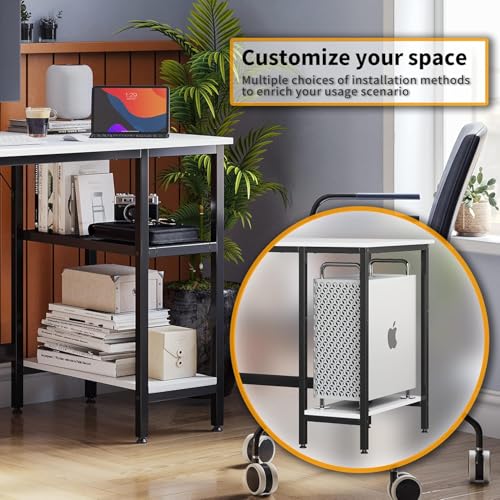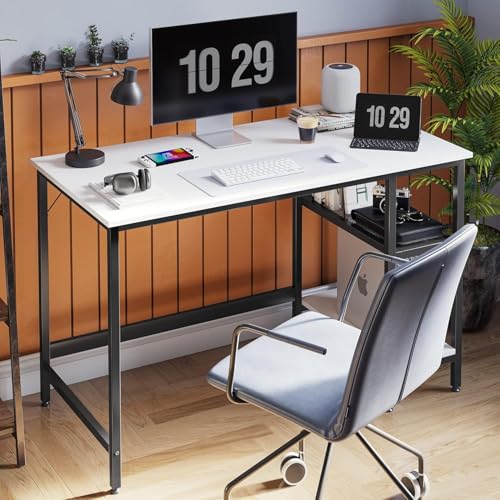 Generic - مكتب كمبيوتر صغير للعمل من المنزل والمذاكرة - ترابيزة مكتب 1.20 متر مع رفوف تخزين جانبية ولوحة تركيب - تصميم مودرن الصغيرة (ابيض)