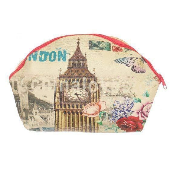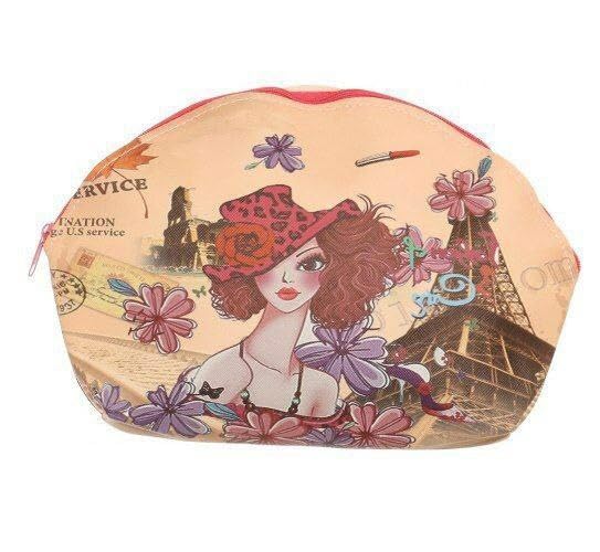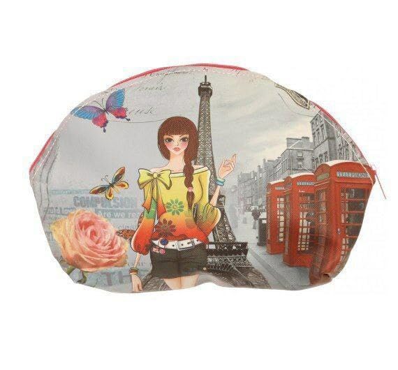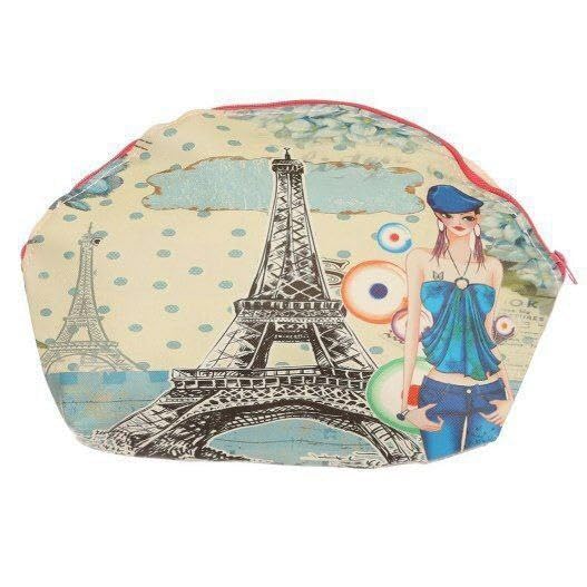 - ١) التصميم: حقيبة مستحضرات تجميل بتصميم عصري وأنيق مع رسومات باريسية جذابة ومطبوعات فنية ملونة