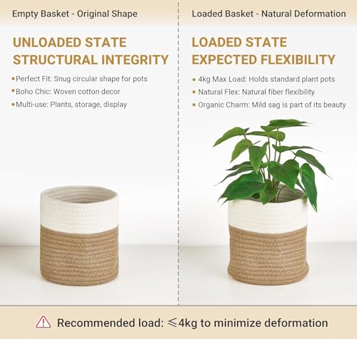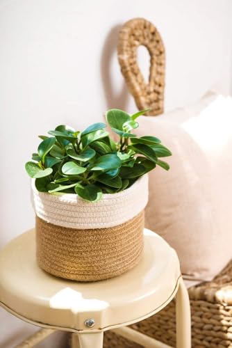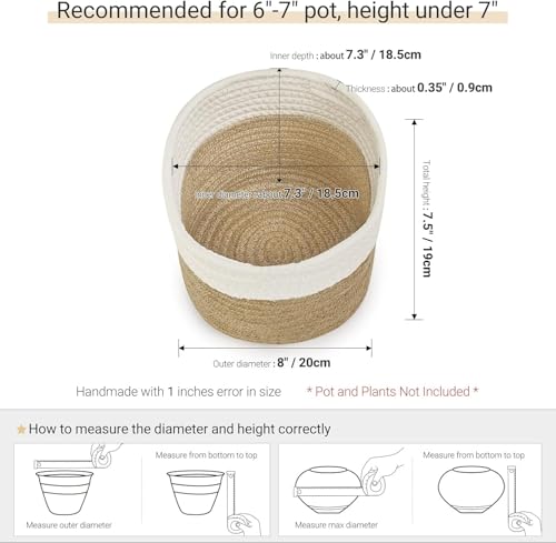 Generic - سلة نباتات صغيرة منسوجة من الحبال القطنية، سلة نباتات ملفوفة لزراعة النباتات حتى 7 انش، غطاء وعاء زهور مزخرف للخزانة، صندوق تخزين، منظم مكتب لديكور المنزل، ابيض وبيج
