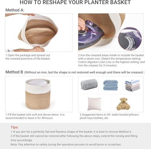 - ديكور المنزل: أضف هذا الديكور العضوي البسيط إلى منزلك لإضفاء إشراقة على حياتك اليومية. ملاحظة: يتم طي السلة عند الشحن، وستعود إلى شكلها الأنيق عند حشوها ببعض المناشف أو البطانية، كما أن المكواة فكرة جيدة. يمكن تقديمها كهدية لحفلات استقبال المولود الجديد أو عيد الأم أو عيد الأب أو الانتقال إلى منزل جديد