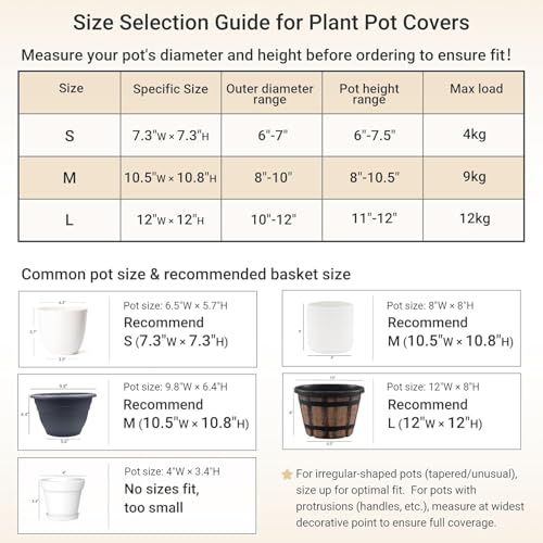 - متعدد الاستخدامات للمشاهد المختلفة: لا يستخدم فقط كغطاء لزراعة النباتات المنزلية للزينة، ولكن أيضًا استخدامه كسلة تخزين لعناصر الغسيل والملابس والبطانيات وألعاب الأطفال والفراش والمجلات واللوازم المنزلية والمزيد. تستخدم على نطاق واسع في غرفة المعيشة أو غرفة النوم أو الحمام أو غرفة الأطفال أو غرفة الغسيل. رائعة لتنظيم الفراش أو مناشف الحمام في خزانة الكتان