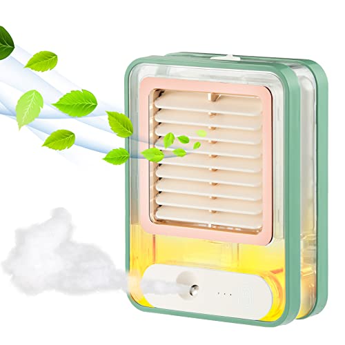 SwissSpin - مروحه مكتب صغيرة من بخاخ رذاذ ضوء ليد ليلي بخاخة كهربائية تعمل بالبطارية قابلة للشحن عن طريق USB تبريد هادئة ومحمولة للمكتب والترابيزة والتخييم والخارج والداخل اخضر عدد المنافذ: 3 سويس سبين 5.0 واط