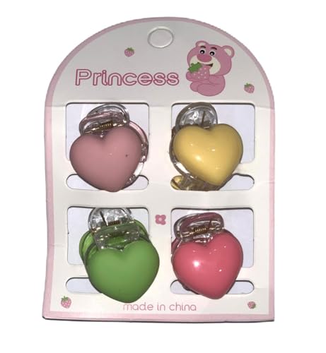 Generic - مشابك شعر صغيرة على شكل زهرة، مشابك مخلبية صغيرة لطيفة للنساء والفتيات، للشعر السميك والرقيق، زينة الشعر، هدايا عيد الميلاد، (متعددة الألوان) على شكل قلب -N3، مجموعة من 4 قطع
