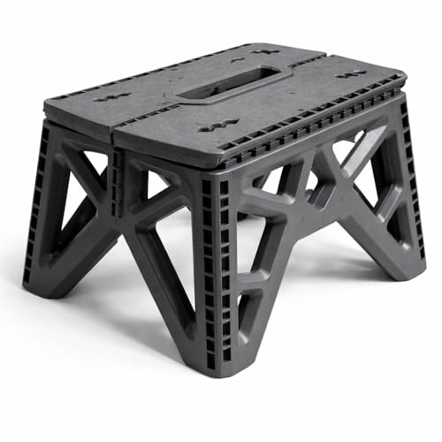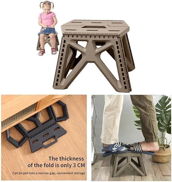 Generic - مقعد بلاستيكي صغير قابل للطي وشديد التحمل ومحمول وموفر للمساحة بلون اخضر للاستخدام الداخلي والخارجي والتخييم والصيد والحديقة، دعم عملي وقوي 32 × 28 × 23 سم (رمادي)