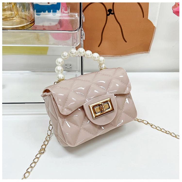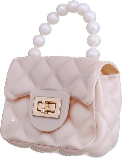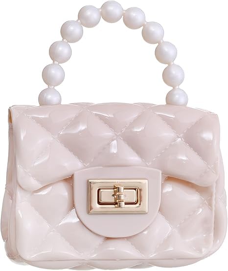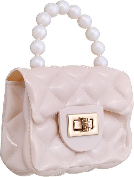 Generic - شنطة يد صغيرة للاطفال والبنات مع شنطة يد كروس ذهبية، مصنوعة من بلاستيك PVC، بيج