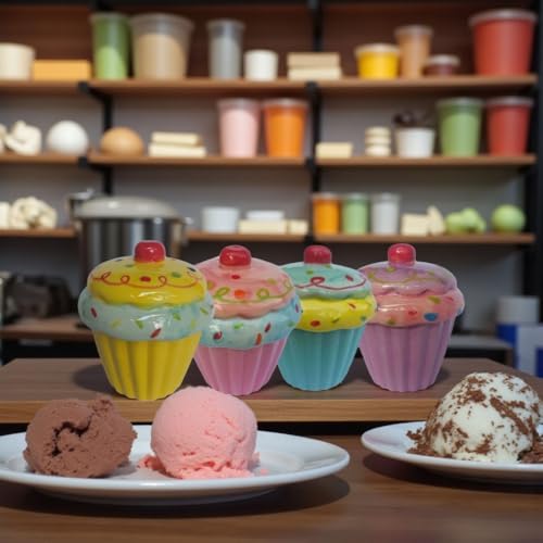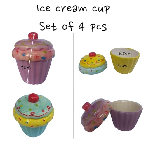 Generic - كوب لتقديم الآيس كريم صغير بغطاء - مجموعة من 4 أكواب بألوان مختلفة