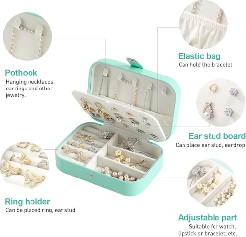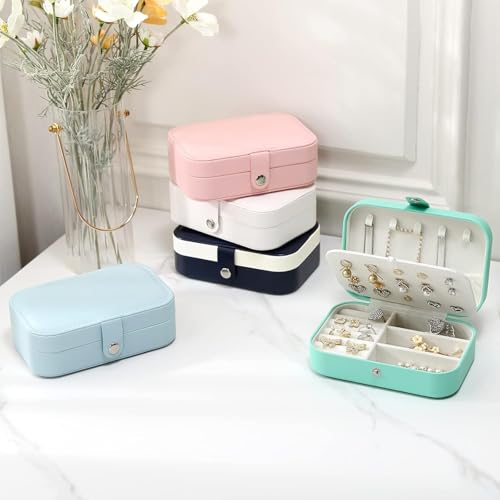 Generic - صندوق مجوهرات صغير للنساء، منظم مجوهرات للسفر بطبقة مزدوجة للسلاسل والحلقان والخواتم، صندوق لحفظ المجوهرات، متعدد الألوان