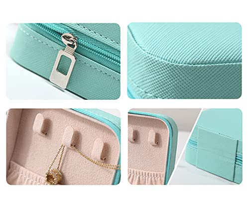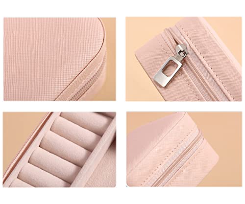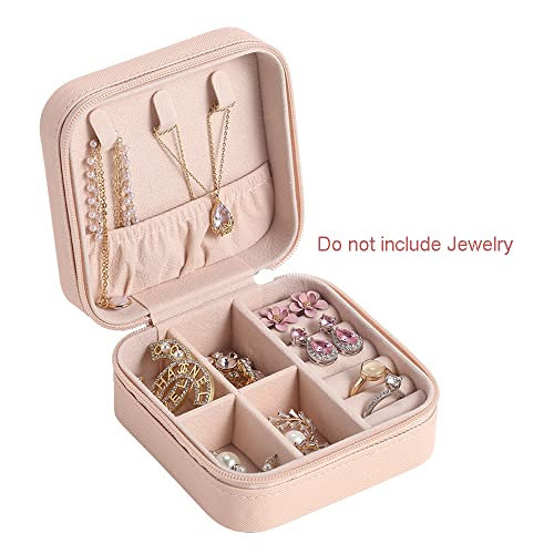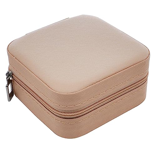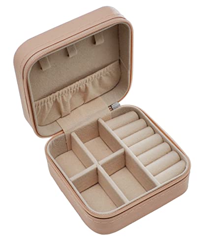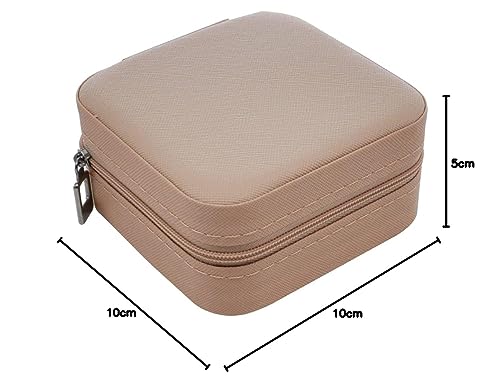 EMOVERY - صندوق مجوهرات صغير حقيبة تخزين صغيرة من جلد البولي يوريثان للأقراط والسلاسل والخواتم والأساور منظم المجوهرات المحمول للسفر والمنزل بيج