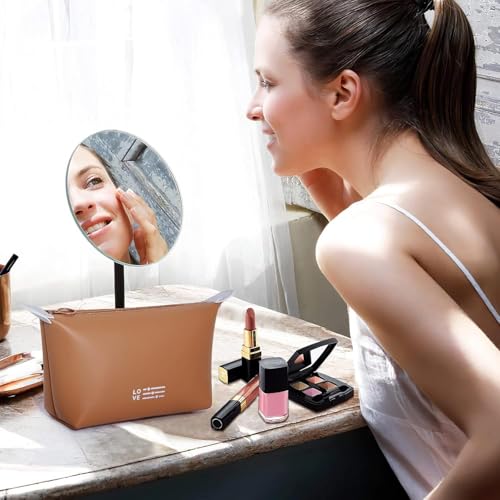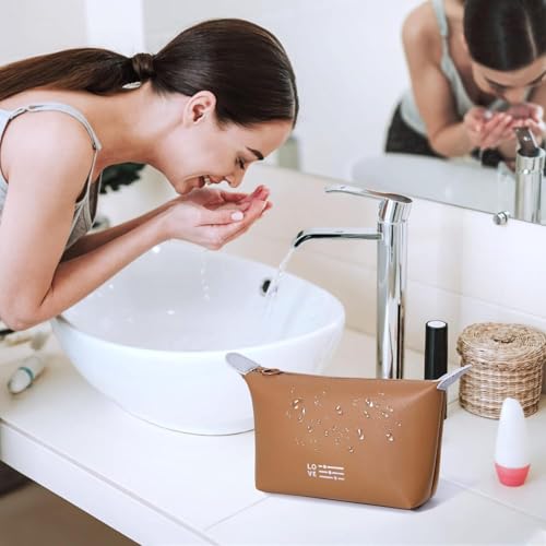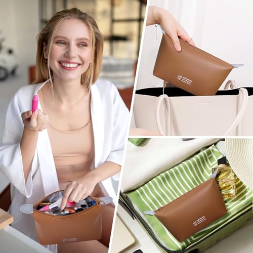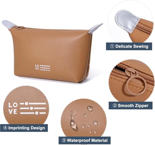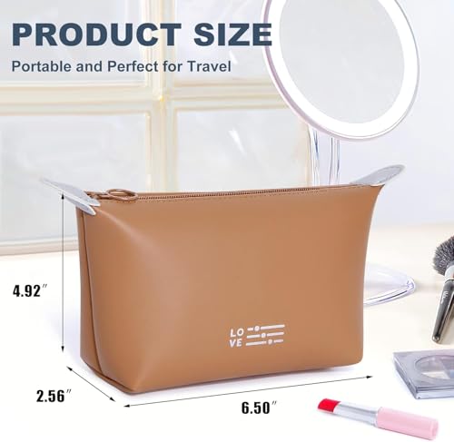 Generic - شنطة مكياج صغيرة للنساء، شنطة مكياج مقاومة للماء مع سحاب، شنطة تنظيم مكياج محمولة (بني)